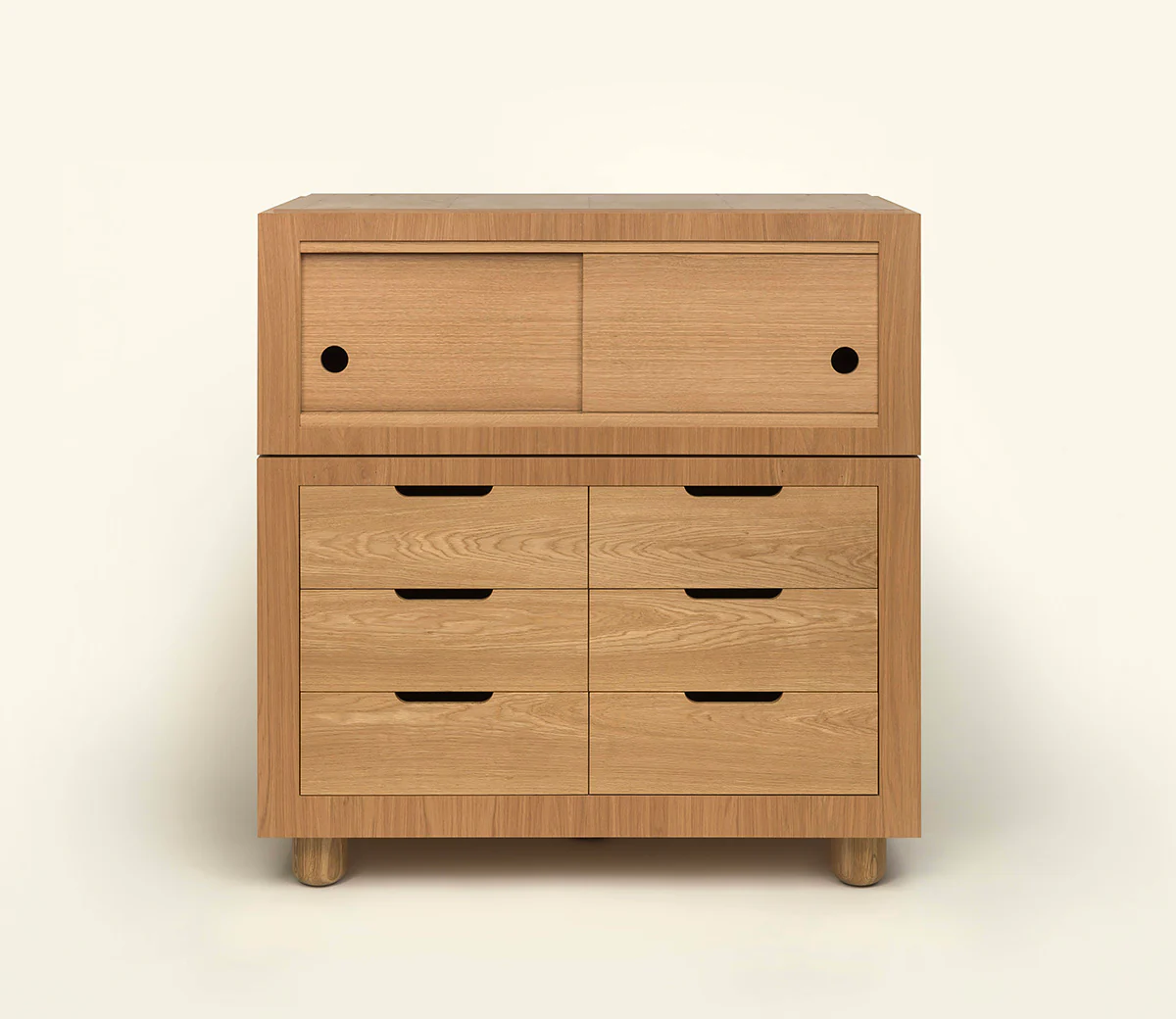 Inspired by the curves of the Art Deco movement, the Jackson highboy was originally designed as a commission for a client in Jackson Heights, Queens. Crafted from a practical blend of solid and plywood construction, it celebrates the arch form in monumental proportions. Designed in three distinct pieces (drawer storage, cubbies and shelving), it is completely customizable. Perfect for installing in challenging spaces, it breaks down and bolts together on site. A true investment piece that makes a room (and makes room). Custom sizes and wood species upon request. Hardware is customizable.